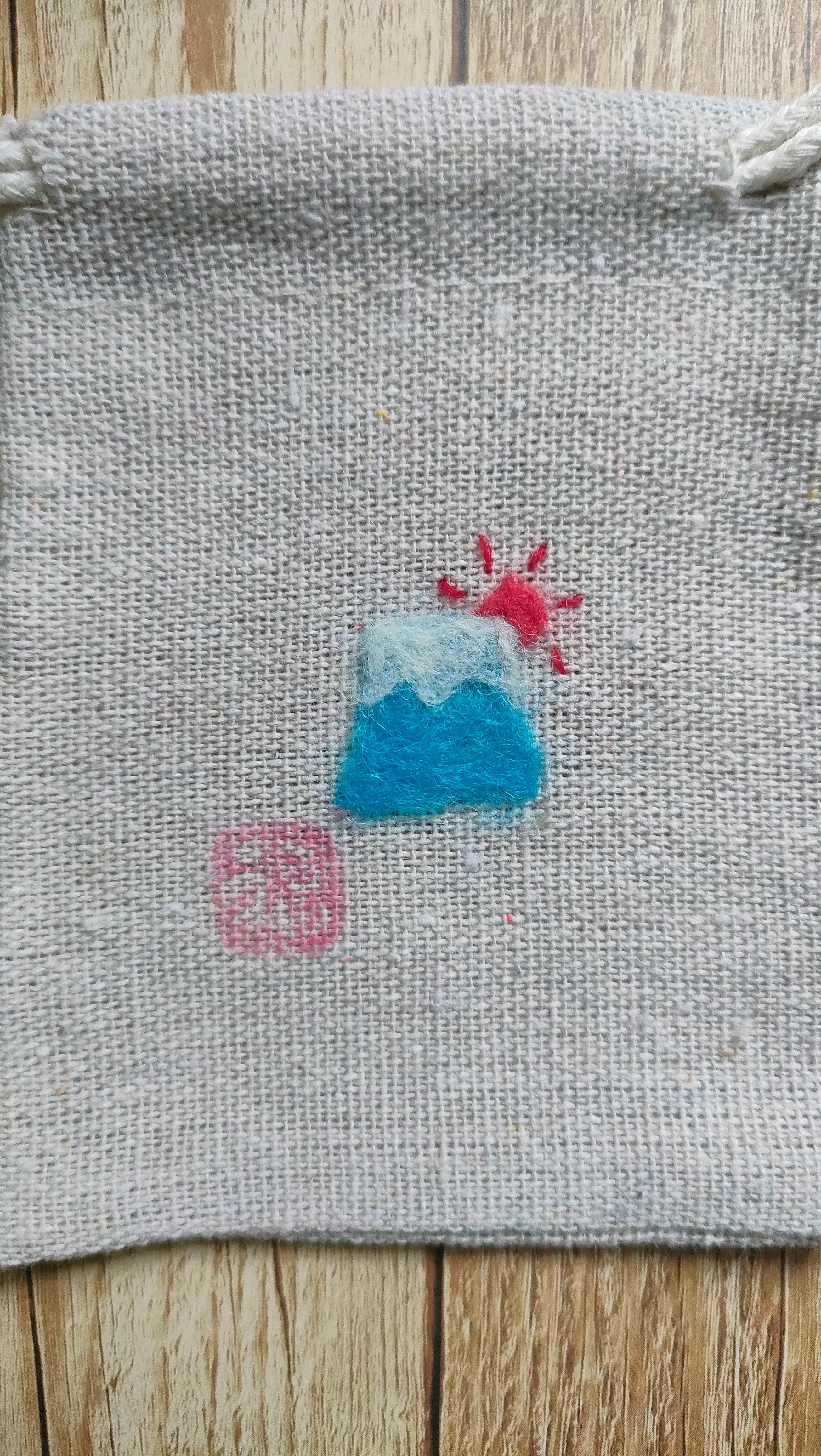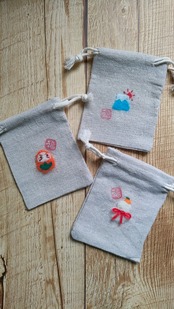 ・刺繍部分は水濡れしても問題ありませんが、洗う場合はやさしく押し洗いしてください。また、巾着の材質上、水に濡れると縮む可能性があります。