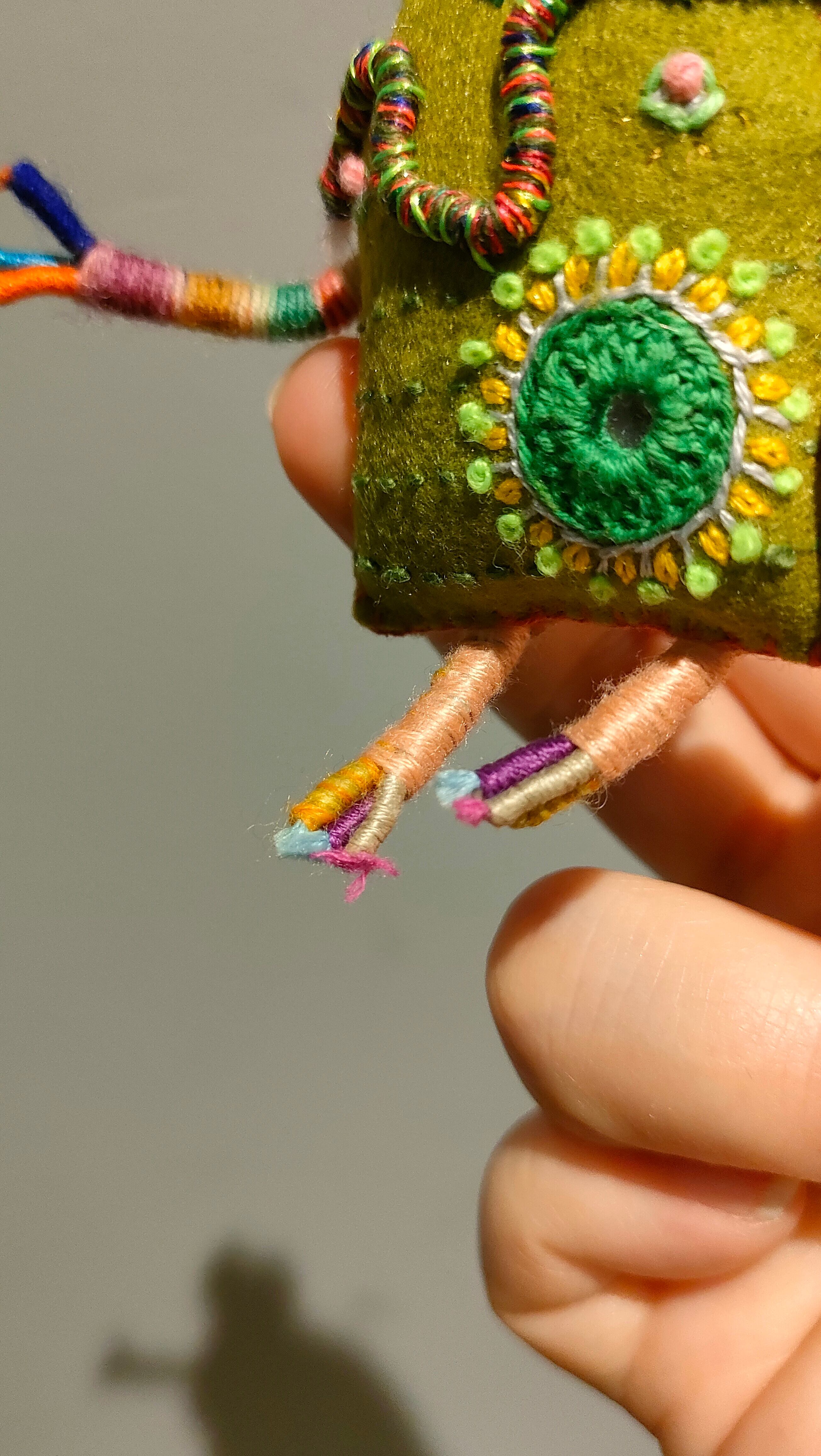 手足は、特殊な芯に糸を巻いて作っているため、