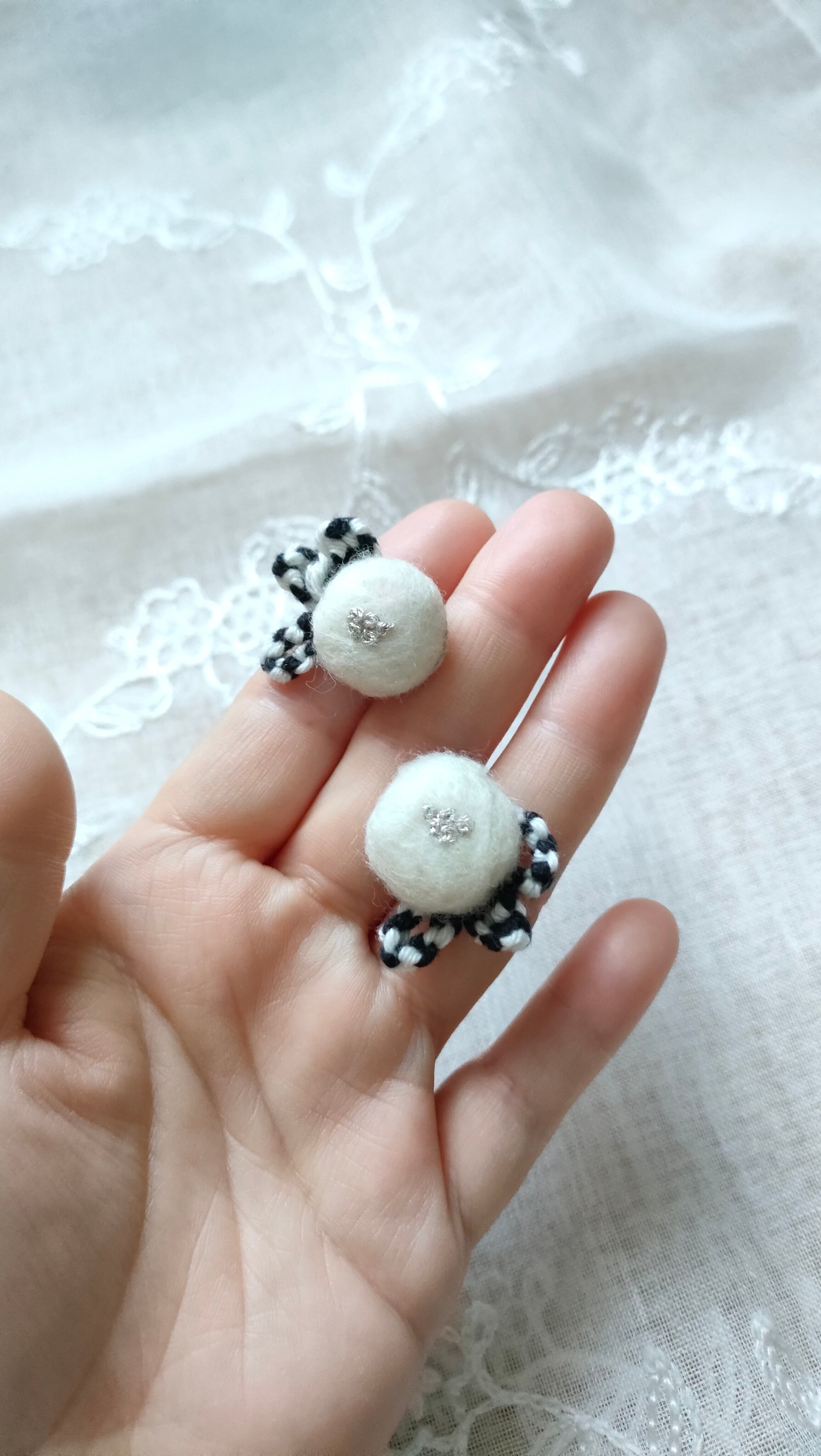 羊毛フェルトなのでとても軽く、小さいなかにもさりげない主張がある作品となりました。