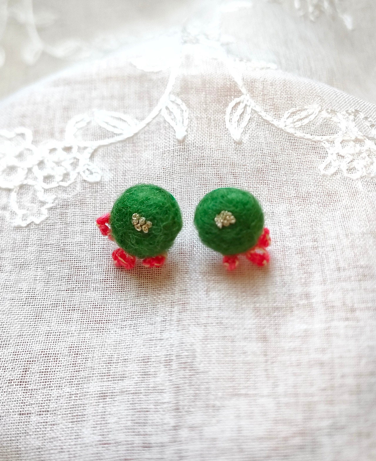 羊毛フェルトに刺繍をあしらったつぶころに