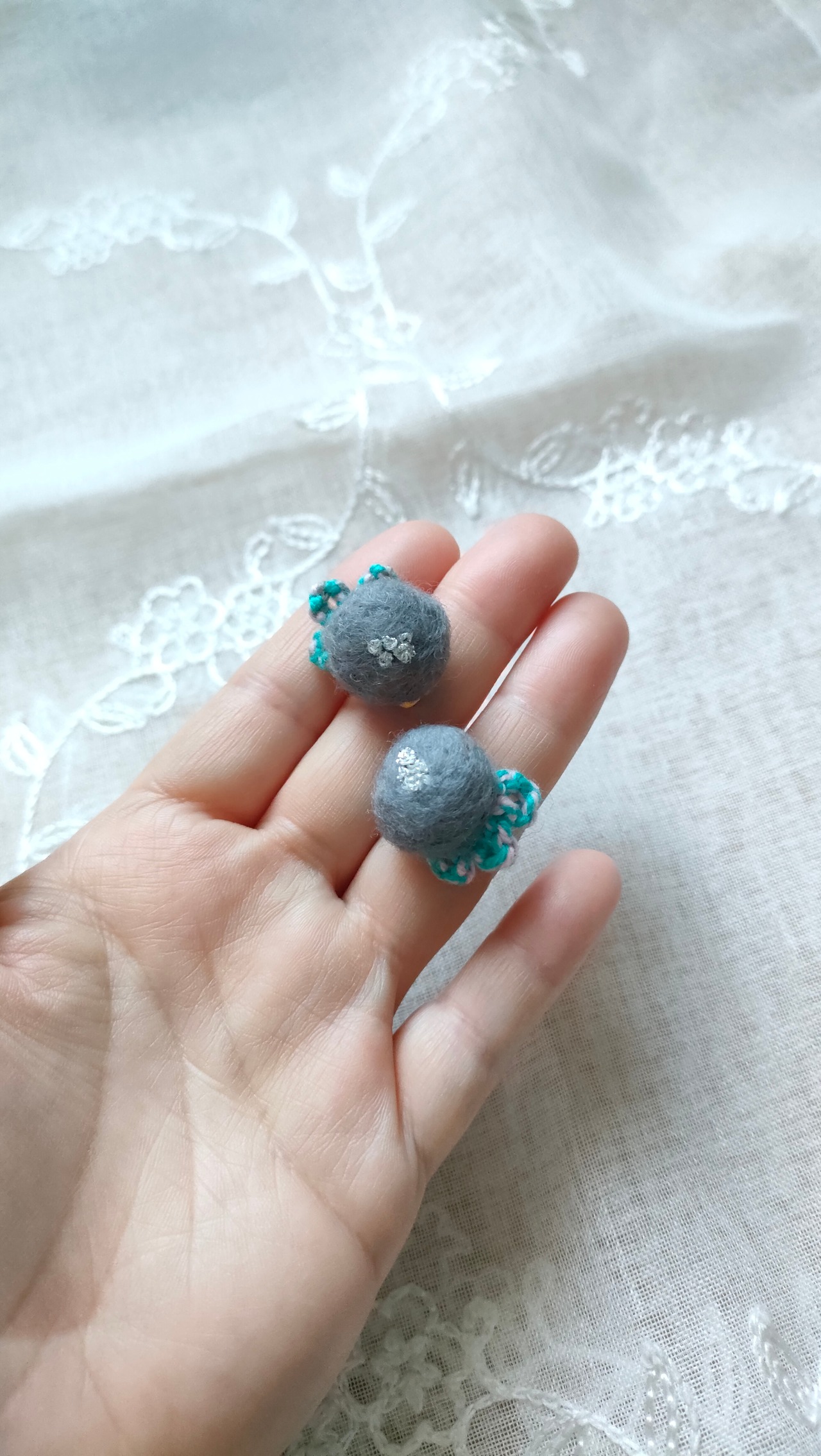 羊毛フェルトなのでとても軽く、小さいなかにもさりげない主張がある作品となりました。