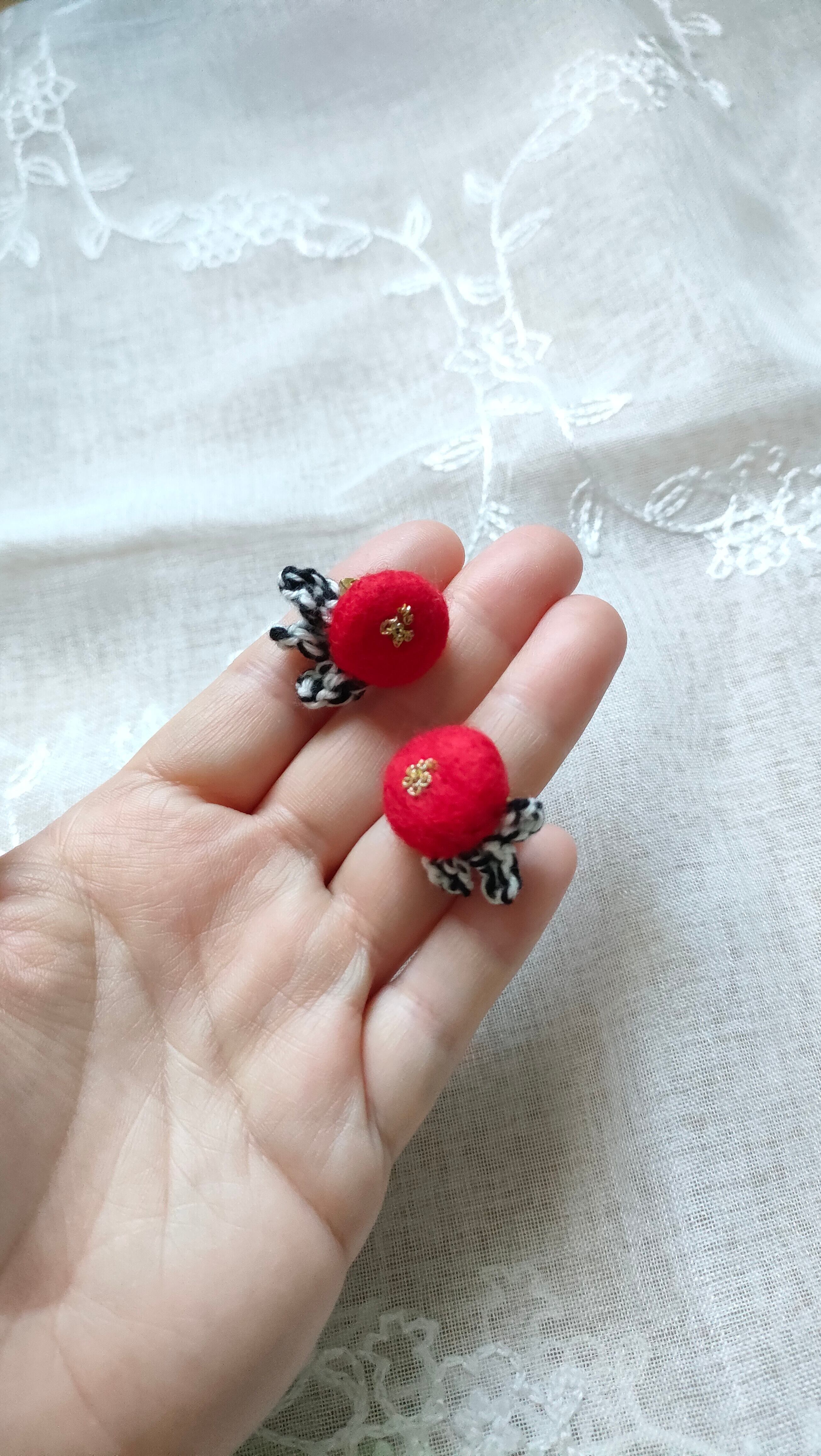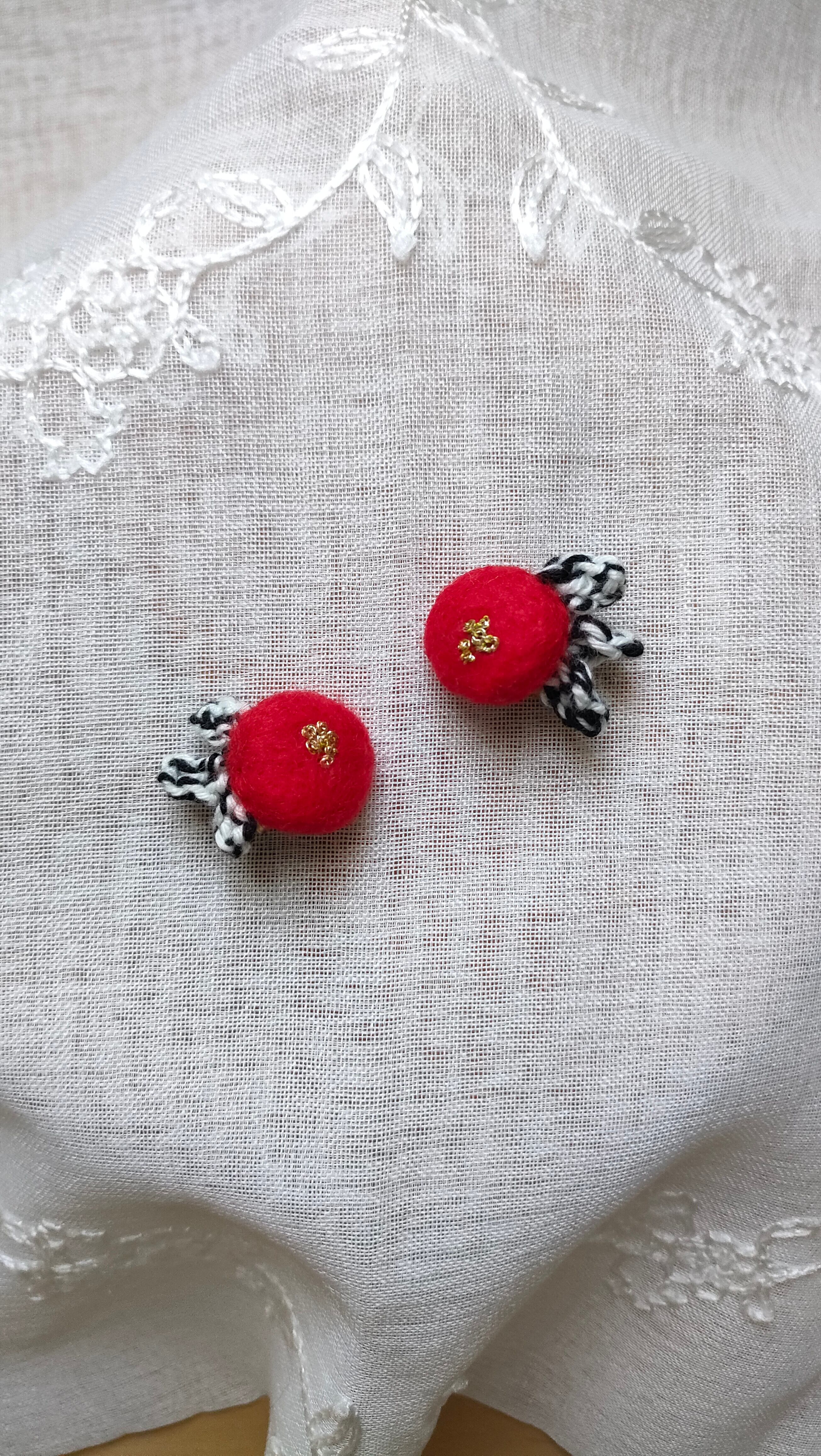 羊毛フェルトなのでとても軽く、小さいなかにもさりげない主張がある作品となりました。